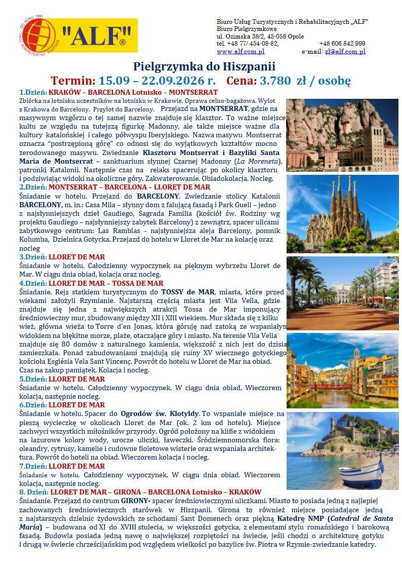 Pielgrzymka do Hiszpanii: 15-22 września;